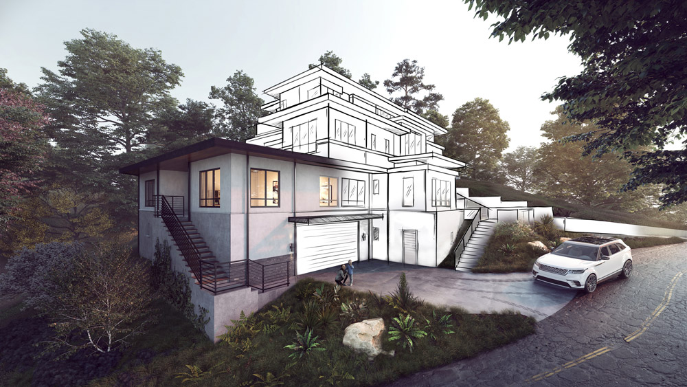 Our contributions to this project included construction management, exterior animation design (Animation can be watched through the Google Drive link here), interior design and rendering (available here), and exterior rendering (accessible here). We were also involved in architectural revisions and permitting, encompassing designing elements such as a floating deck (accessible here) and floating stairs (accessible here) and interior and exterior layout changes.